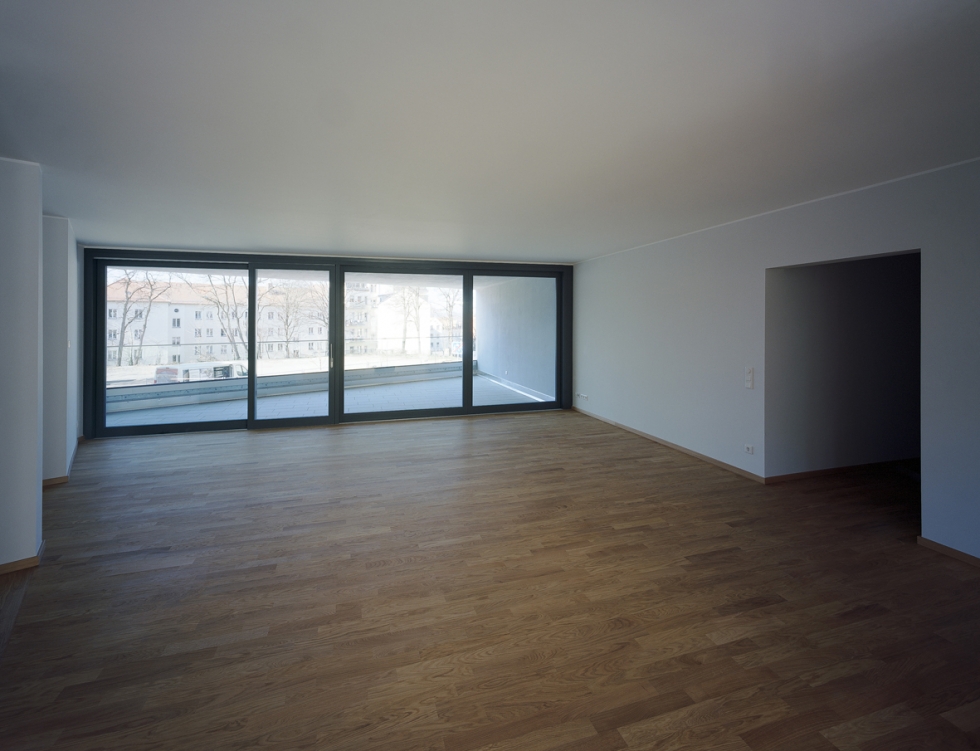 Die Eckbebauung soll die bestehende Lücke im Häuserblock schließen. Die unterschiedlich großen Wohneinheiten werden mit großzügigen Terrassen ausgestattet und in den Grundrissen nach den Wünschen der Eigentümer frei gestaltbar sein.