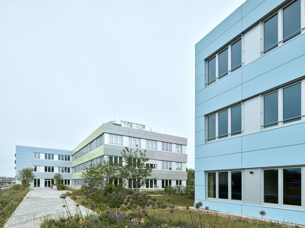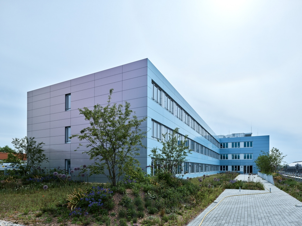 Die Farbigkeit der Fassade variiert in einem festgelegten Verlauf über das Gebäude hinweg, so dass der Betrachter das Haus als Untergrund für ein interessantes und immer wieder neues Spiel aus Farbe und Licht wahrnimmt.